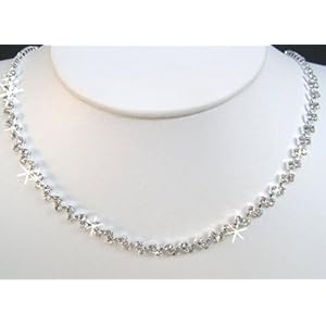 "Includes the matching earrings for pierced ears. Necklace Set for weddings, proms, parties, pageants, first communion, or other special occasions....... The necklace adjusts from 15""-18"" and has 3/16"" length at the center. The earrings are approximately 1-1/4"". All stones are crystal clear! It also comes with a very nice gold gift box."