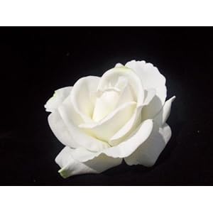 White Wedding Rose Real Touch Flower Hair Clip - Beautiful Full White Rose Bloom Approximately 3 1/2 Inches Real Touch Soft Petals- The most life-like artificial flowers on the market! Highest Quality Available Alligator Clip