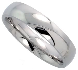 This ring is great. during this process of trying to find the perfect ring I bought a tungsten carbide ring from titaniumkay.com for $[...] and my wife didn't like the color and it was a little heavy. So I bought a real gold ring from amazon, but I sent it back because I hated how much it cost. I finally bought this surgical steel ring at the same time as another tungsten carbide ring [Tungsten Carbide 3/16" ( 5mm ) Polished Comfort Fit Domed Bandat], and I ended liking the sergical steel much better. So i sent the final tunsten ring back too. The shine, POLISH, and color on the Surgical steel ring look just like my wifes white gold rings. She is very happy that i finally found my inexpensive ring that looks like her Gold ones. The surgical steel is much lighter weight than the tungstan ring and has not scratched yet. In time if it gets to scratched up ill just buy a new one because its so cheap. So fare i have worn it while doing everything, and it seems to resist scratching pretty well. The polish is perfect, and you can't bet the cost anywhere. After all of my returns and shipping cost on the other rings I ended up spending around $[...] finding this one. Just choose the surgical steel ring from the start and you will love it. Its looks the BEST.